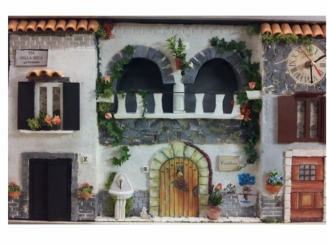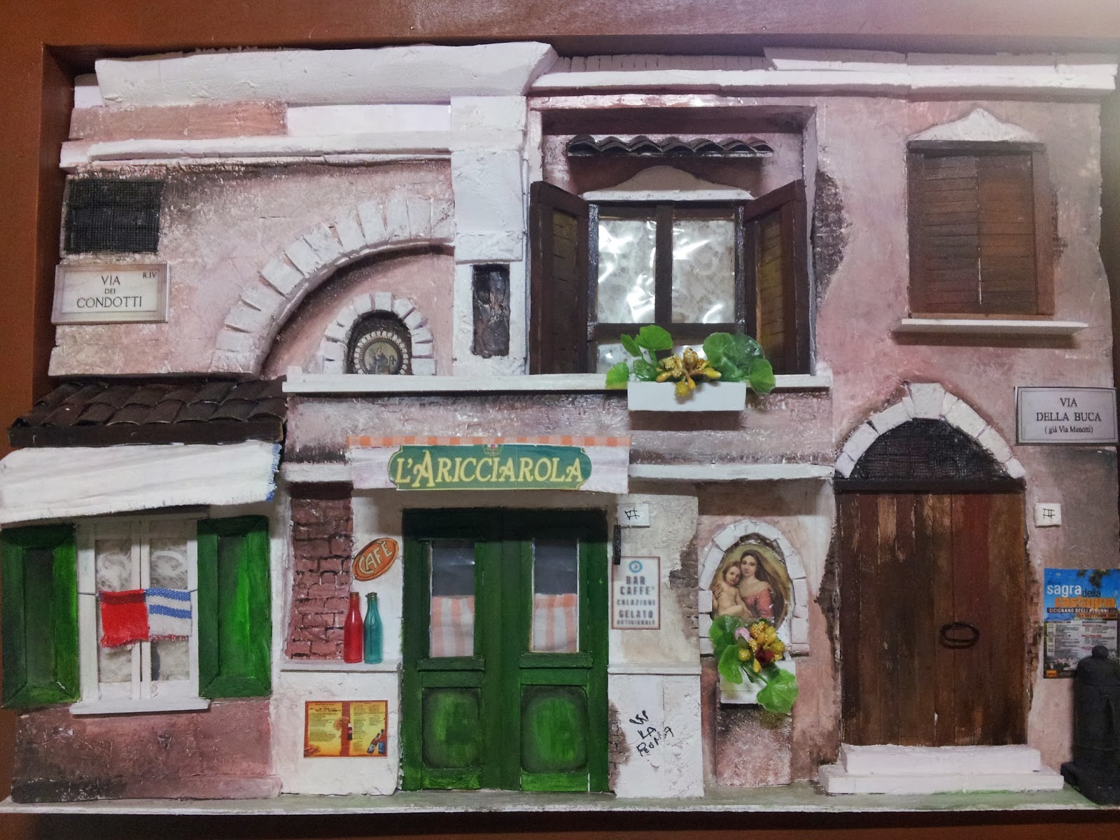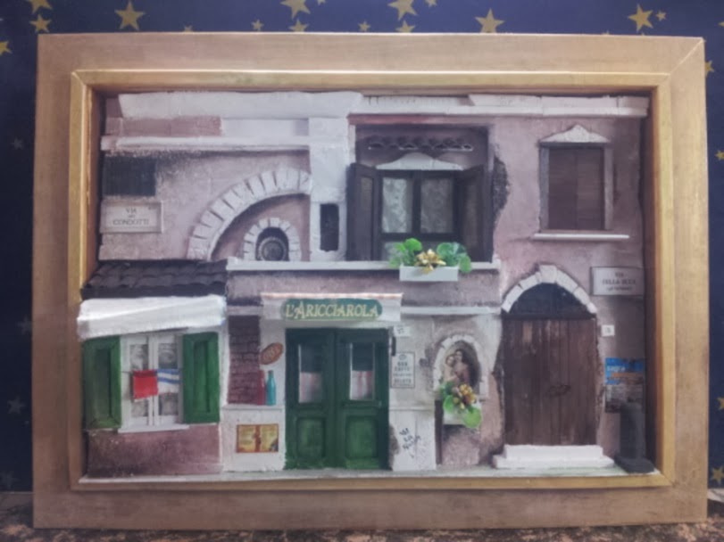questo quadro l'ho chiamato "vicolo di Roma con botteghe" perché ho cercato di riprodurre una piccola strada del centro di Roma che era fatta piu' o meno cosi'....