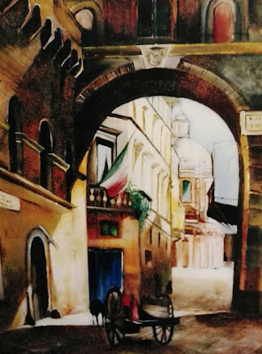 olii su tela "angolo di Roma antica" e "primavera "